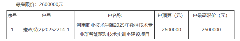 河南职业技术学院2025年数控技术专业群智能驱动技术实训室建设项目招标项目的潜在投标人应在《河南省公共资源交易中心网》(http://www.hnggzy.net)。获取招标文件,并于2025年12月16日09时00分(北京时间)前递交响应文件。